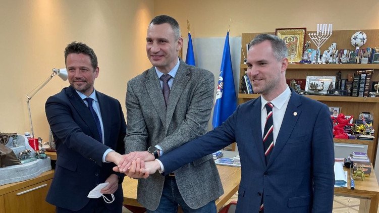 Pražský primátor Zdeněk Hřib a primátor Varšavy Rafal Trzaskowski coby zástupci Paktu svobodných měst na jednání s kyjevským starostou Vitalijem Kličkem vyjádřili solidaritu a podporu Kyjevu i Ukrajině. Starosta Vitalij Kličko naopak ocenil osobní návštěvu obou primátorů ve městě právě v těchto těžkých dnech. Primátor Hřib předal také deklaraci podpory a solidarity ze strany hlavního města Prahy, kterou přijala v pondělí městská rada. Primátoři budou nadále v přímém kontaktu v případě eskalace situace a potřeby věcné či jiné podpory.